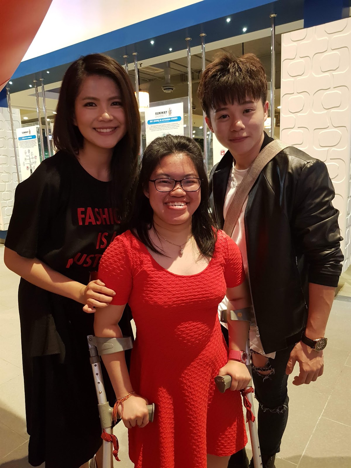 他们表演结束后,我到 “后台” 和他们合照。William哥露出关切的眼神说:“Katelyn,以后要小心点。别摔倒!还有,谢谢你的小礼物。” Geraldine姐和William哥问我在就什么科系,我说:“BA (Hons) Communication。” 他们赞叹道:“不错!继续加油哦!” 非常开心和两位团聚在大学!新年愿望实现啦!